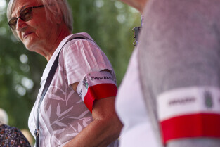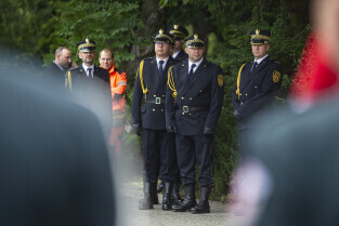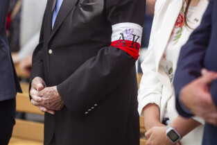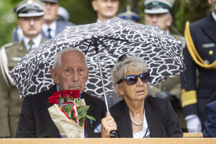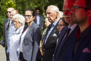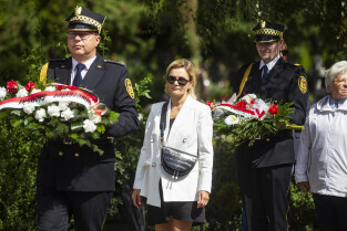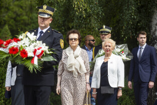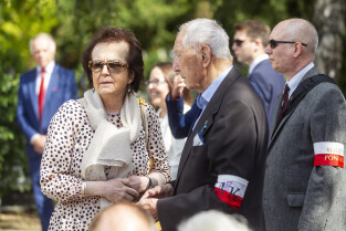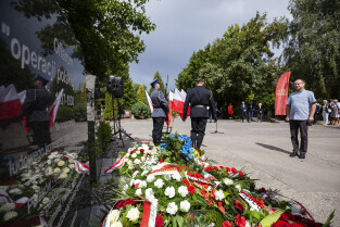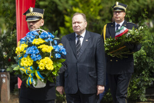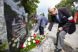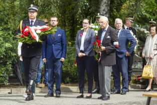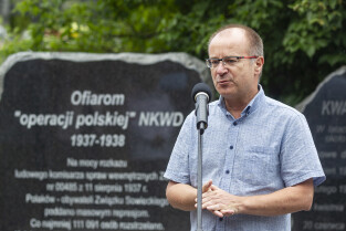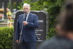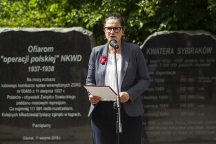 Obchody 84 rocznicy ludobójstwa polaków w ZSRR przez NKWD, odbywające się przy kamieniu upamiętniającym ofiary na cmentarzu Łostowickim w Gdańsku.