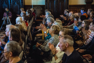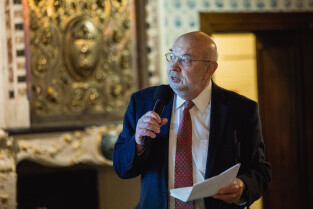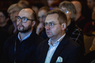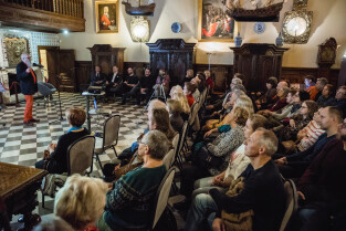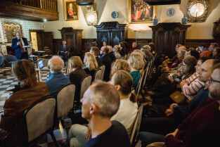 Gdańsk, Dwor Artusa. 84. rocznica nocy kryształowej w Gdańsku. W spotkaniu wzięli udział dr Jan Daniluk, dr Mieczysław Abramowicz oraz Izabela Jastrzembska-Olkowska i Klaudiusz Grabowski