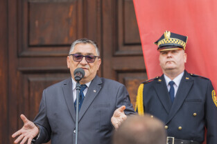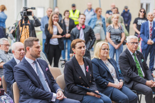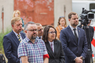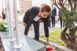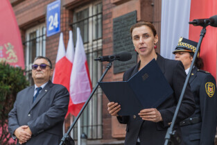 Gdańsk, ul. Kładki. 85. rocznica prześladowań Polaków w Victoriaschule. Nz. Monika Chabior, zastępczni prezydent Gdańska