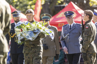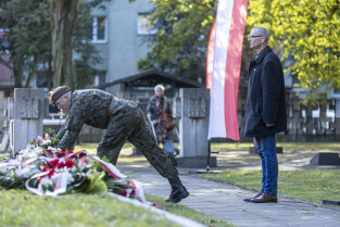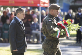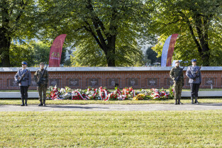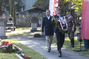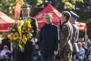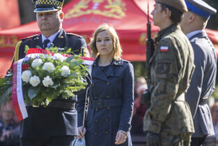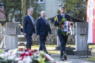 Gdańsk. Na Cmentarzu Ofiar Terroru Hitlerowskiego na Zaspie odbyły się uroczystości związane z 85 rocznicą rozstrzelania obrońców Poczty Polskiej w Wolnym Mieście Gdańsku. W uroczystości udział wzięli między innymi Wiceminister w Ministerstwie Funduszy i Polityki Regionalnej Jacek Karnowski, Konsul generalna Niemiec Cornelia Pieper, Dyrektor Zarządzający ds. Zielonego Gdańska Piotr Kryszewski, Wicewojewoda Pomorski Anna Olkowska-Jacyno, poseł Jarosław Wałęsa, radni miasta Andrzej Kowalczys i Maksymilian Kieturakis, Dyrektor Muzeum Gdańska Waldemar Ossowski, zastępca dyrektora Muzeum II Wojny Światowej, dr Janusz Marszalec.