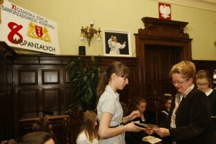 XI Gdańska Edycja Samorządowego Konkursu Ośmiu Wspaniałych, w którym nagradzani są uczniowie szkół za bezinteresowną pomoc innym. Nz. dyplomy wręcza Z-ca Prezydenta Gdańska Ewa Kamińska