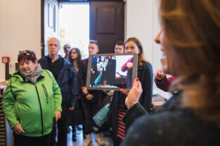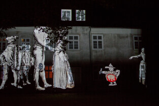 Gdańsk. 90. urodziny Güntera Grassa. “Chodowiecki na urodzinach u Grassa” – happening multimedialny/ mapping animowanych grafik Dom Daniela Chodowieckiego i Güntera Grassa