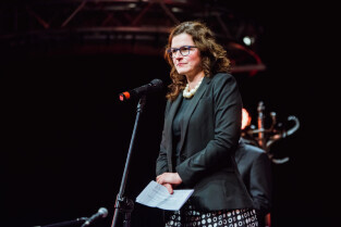Gdańsk. 90. urodziny Güntera Grassa. Koncert Güntera Baby Sommera oraz Nory Gomringer z okazji obchodów rocznicy urodzin Daniela Chodowieckiego (291.) i Güntera Grassa (90.). Nz. Wiceprezydent Gdańska Aleksandra Dulkiewicz