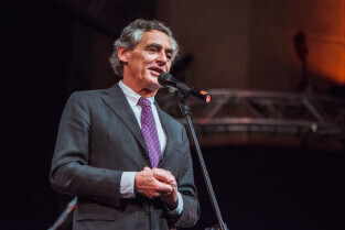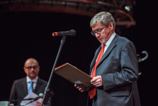 Gdańsk. 90. urodziny Güntera Grassa. Koncert Güntera Baby Sommera oraz Nory Gomringer z okazji obchodów rocznicy urodzin Daniela Chodowieckiego (291.) i Güntera Grassa (90.). Nz. Burmistrz Lubeki Bernd Saxe