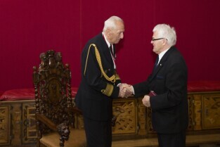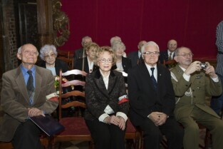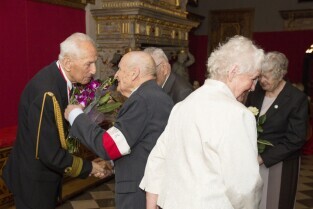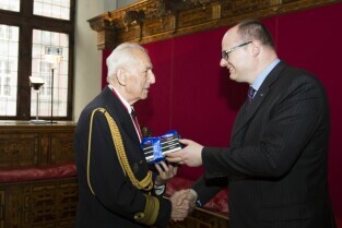 Gdańsk, Ratusz Głównego Miasta. 90. urodziny Romana Rakowskiego (nz) - zasłużonego działacza Światowego Związku Żołnierzy Armii Krajowej