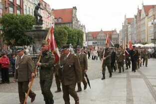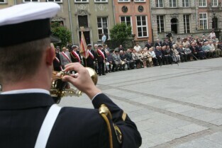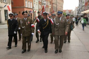 90 lecie Związku Inwalidów Wojennych. Parada Kompanii Honorowej Marynarki Wojennej. Gdańsk, Długi Targ