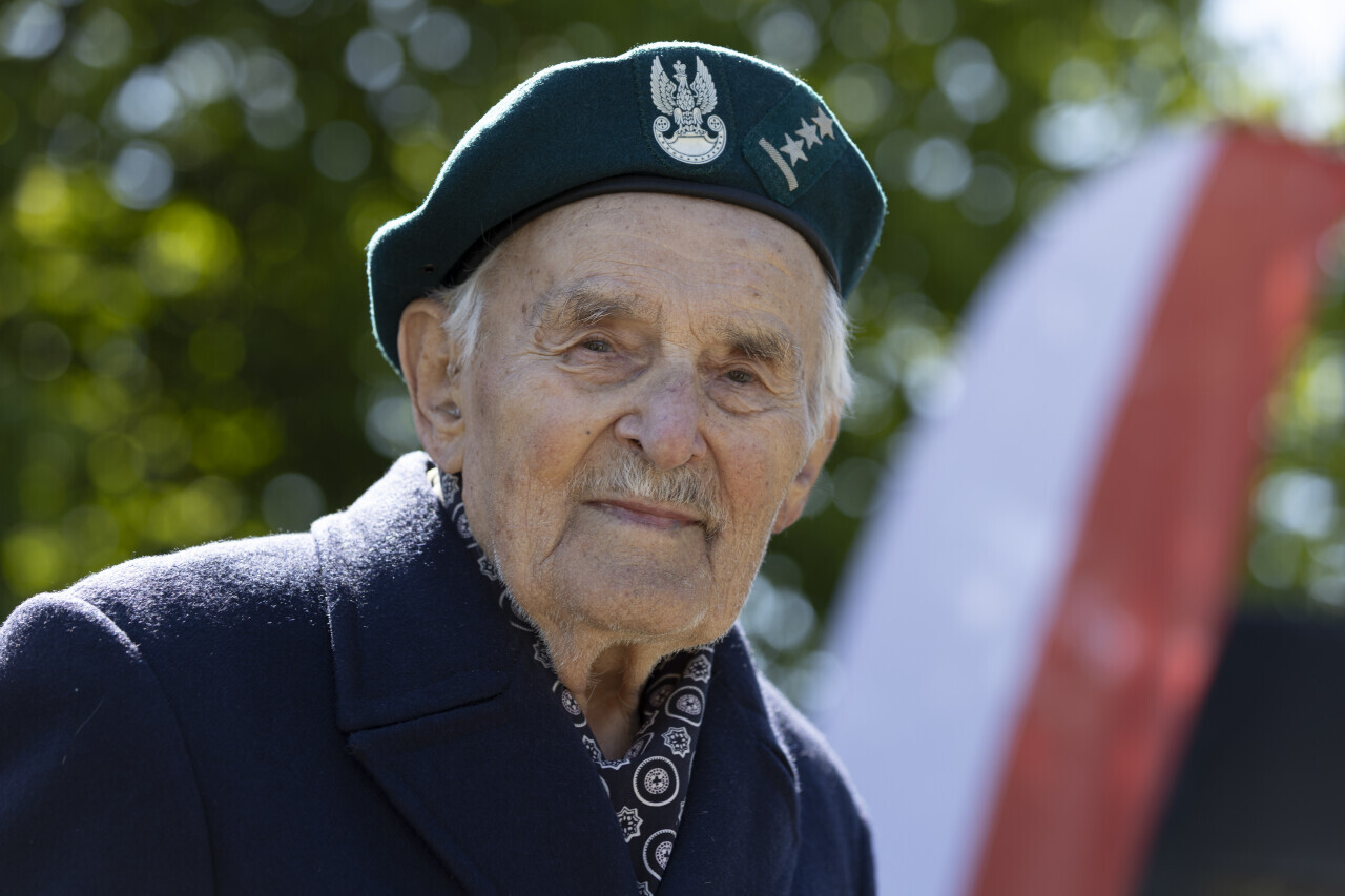 Gdańsk.90. rocznica śmierci marszałka Józefa Piłsudskiego. Nz. Porucznik sztabowy Marian Drożdż, ps. Wulkan, uczestnik wojny obronnej 1939.