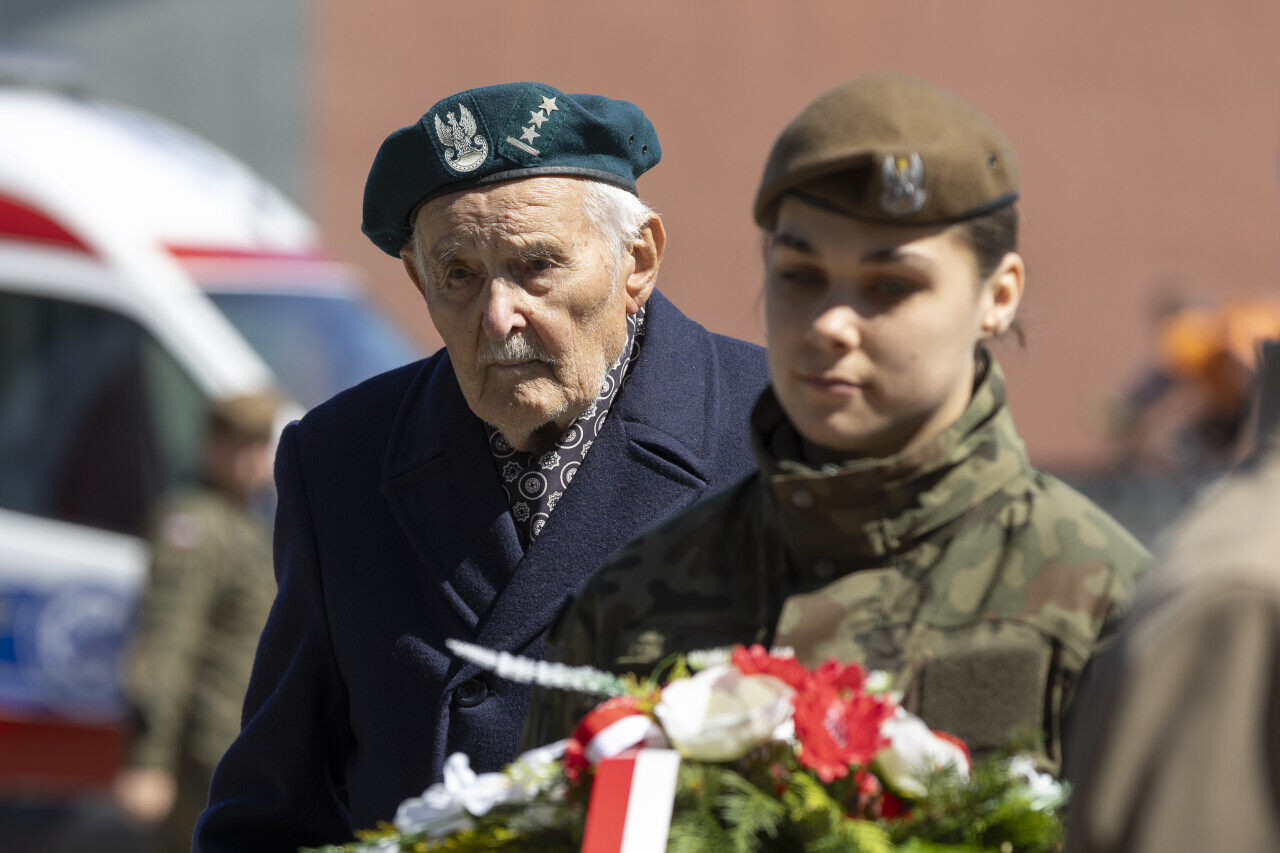 Gdańsk.90. rocznica śmierci marszałka Józefa Piłsudskiego. Nz. Porucznik sztabowy Marian Drożdż, ps. Wulkan, uczestnik wojny obronnej 1939.