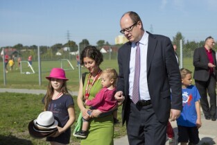 Festyn rodzinny z okazji 92. urodzin Klubu Sportowego Gedania 1922. Gdańsk, obiekty sportowe al. Hallera 201. Nz. Prezydent Gdańska Paweł Adamowicz z córką Terasą