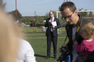 Festyn rodzinny z okazji 92. urodzin Klubu Sportowego Gedania 1922. Gdańsk, obiekty sportowe al. Hallera 201. Nz. Prezydent Gdańska Paweł Adamowicz