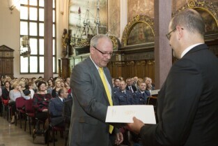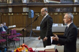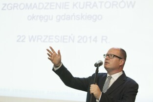 Gdańsk, Dwór Artusa. Uroczystość z okazji 95 rocznicy powołania kurateli sądowej w Polsce – Okręgowe Zgromadzenie Kuratorów Sądu Okręgowego w Gdańsku. Nz. Prezydent Gdańska Paweł Adamowicz