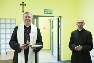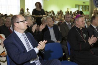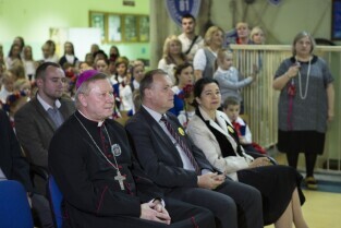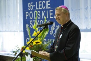 Gdańsk Osowa. Obchody 95-lecia Szkoły Podstawowej nr 81 połączone z otwarciem zmodernizowanych obiektów i Dniem Edukacji Narodowej. Nz. Biskup pomocniczy Archidiecezji Gdańskiej Wiesław Szlachetka