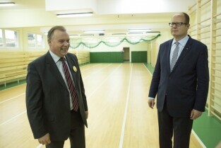 Gdańsk Osowa. Obchody 95-lecia Szkoły Podstawowej nr 81 połączone z otwarciem zmodernizowanych obiektów i Dniem Edukacji Narodowej. Nz. Prezydent Gdańska Paweł Adamowicz i Dyrektor Dyrekcji Rozbudowy Miasta Gdańska Włodzimierz Bartosiewicz (po lewej)