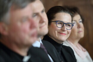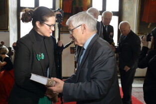 Gdańsk, Wielka Sala Wety, Ratusz Głównego Miasta. 95. urodziny kmdr. Romana Rakowskiego. Nz. Prezydent Gdańska Aleksandra Dulkiewicz.
