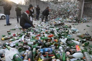Losowanie nagród w 9 Sylwestrowym Konkursie Butelkowym. Konkurs zorganizowała Rada Miasta Gdańska i Zakład Utylizacyjny w Gdańsku. Nz Beata Dunajewska-Radna Miasta Gdańska