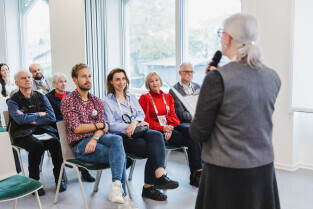 Gdańsk. 9. Urodziny Bohatera Borysa w Domu Zdrojowym. Nz. prof. Maria Mazurkiewicz-Bełdzińska