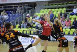 Gdańsk Hala Widowiskowo-Sportowa AWFiS. Mecz piłki ręcznej kobiet AZS Łączpol AWFiS Gdańsk - Metraco Zagłębie Lubin.