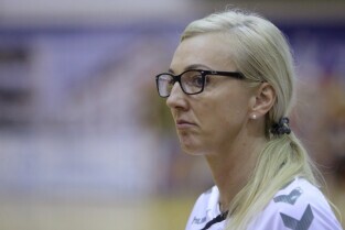 Gdańsk Hala Widowiskowo-Sportowa AWFiS. Mecz piłki ręcznej kobiet AZS Łączpol AWFiS Gdańsk - Metraco Zagłębie Lubin. Nz Trener Łączpolu-Edyta Majdzińska.
