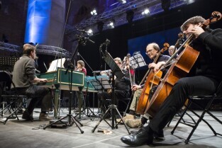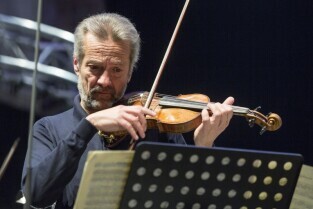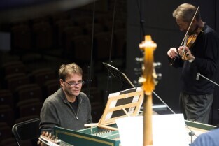 Festiwal Muzyki Dawnej "Actus Humanus". Próba koncertu orkiestry Accademia Bizantina. Giuliano Carmignola - skrzypce i Ottavio Dantone - dyrygent, klawesyn. Gdańsk Centrum św. Jana.