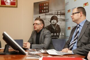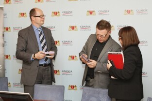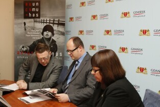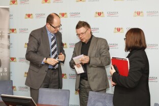 Konferencja prasowa organizacji w Gdańsku Festiwalu Actus Humanus poświęconego muzyce dawnej. W briefingu udział wzięli Dyrektor Artystyczny Festiwalu Filip Berkowicz, Prezydent Gdańska Paweł Adamowicz, Dyrektor Biura ds. Kultury Anna Czekanowicz-Drążewska. Gdańsk, Urząd Miejski.