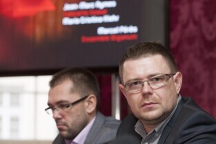 Gdańsk, Dom Uphagena. Konferencja prasowa poświęcona organizacji festiwalu muzyki dawnej "Actus Humanus". Nz. Prezes Saur Neptun Gdańsk Serge Bosca