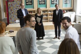 Zakończenie warsztatów Gdańskie Centrum Debaty i Dialogu „Akademia Debaty”. Gdańsk, Istytut Kultury Miejskiej. Nz. od lewej: Prezydent Gdańska Paweł Adamowicz, Dyrektor Instytutu Kultury Miejskiej Aleksandra Szymańska, Kierownik projektu jest dr Marek Kochan