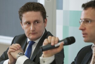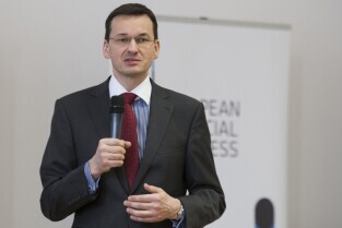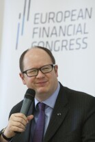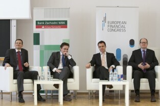 Spotkanie inauguracyjne projektu "Akademia Europejskiego Kongresu Finansowego” skierowanego do studentów i młodych absolwentów. Sopot, Wydział Zarządzania Uniwersytetu Gdańskiego. Nz. od lewej: Prezes Banku Zachodniego WBK Mateusz Morawiecki, Doradca Prezesa Giełdy Papierów Wartościowych w Warszawie Paweł Czupryna, Prezes BEST SA Krzysztof Borusowski, Prezydent Gdańska Paweł Adamowicz