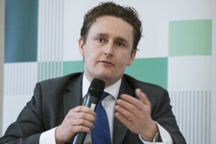 Spotkanie inauguracyjne projektu "Akademia Europejskiego Kongresu Finansowego” skierowanego do studentów i młodych absolwentów. Sopot, Wydział Zarządzania Uniwersytetu Gdańskiego. Nz. Prezes Banku Zachodniego WBK Mateusz Morawiecki