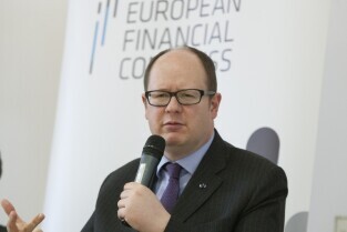 Spotkanie inauguracyjne projektu "Akademia Europejskiego Kongresu Finansowego” skierowanego do studentów i młodych absolwentów. Sopot, Wydział Zarządzania Uniwersytetu Gdańskiego. Nz. Doradca Prezesa Giełdy Papierów Wartościowych w Warszawie Paweł Czupryna