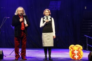 Gdańsk-Sopot, Ergo Arena. Finał programu edukacyjno - kulturalnego Akademia Gdańskich Lwiątek, podczas którego wystąpiły zespoły dziecięce i młodzieżowe, a całość uświetnił koncert Majki Jeżowskiej. Nz. pomysłodawcy akcji Katarzyna Gęba i Andrzej Stelmasiewicz