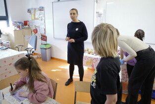 Gdańsk. Akcja Zima, czyli ferie w Gdańsku. Wiceprezydent Gdańska Monika Chabior i dyrektor Wydziału Edukacji - Justyna Dmitruk odwiedziły szkoły objęte akcją. Nz. Szkoła Podstawowa 86