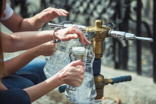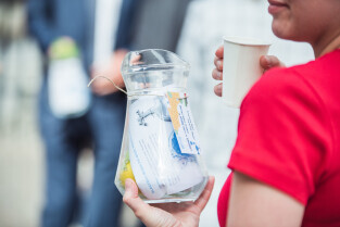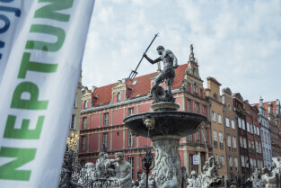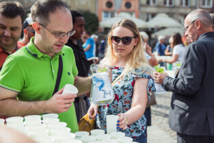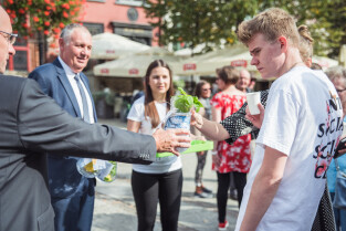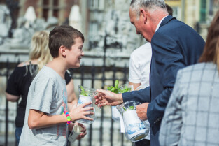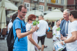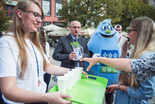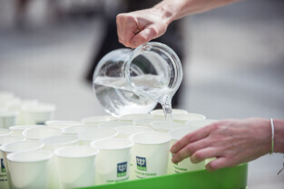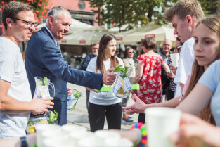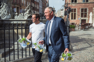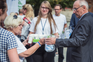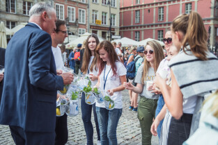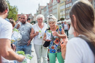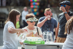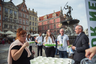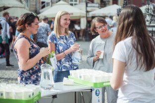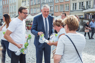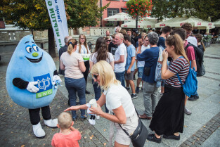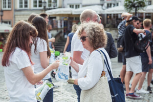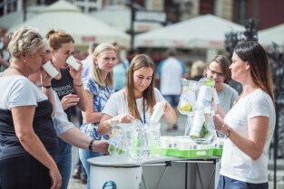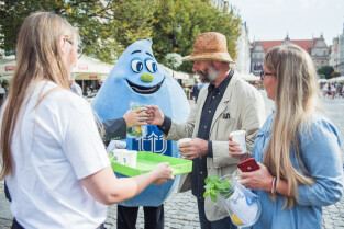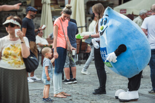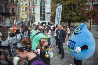 Gdańsk- Długi Targ. Apcja zachęcająca do picia wody z kranu, zorganizowana przez Saur Neptun Gdańsk