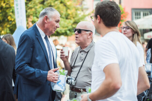 Gdańsk- Długi Targ. Apcja zachęcająca do picia wody z kranu, zorganizowana przez Saur Neptun Gdańsk. Nz. (pierwszy z prawej) Dyrektor ds. Eksploatacji SNG Stanisław Mikołajski