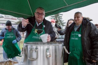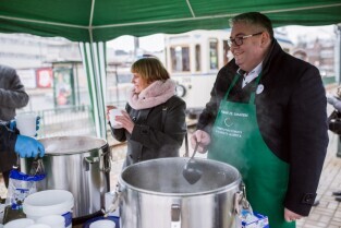 Akcja pomagamy ze smakiem zorganizowana przez Towarzystwo Pomocy im. św. Brata Alberta. Nz Piotr Kowalczuk Z-ca Prezydenta ds. polityki społecznej.
