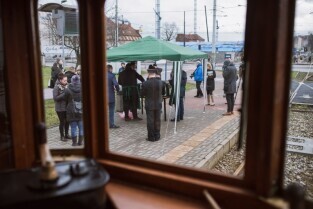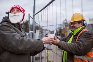 Akcja pomagamy ze smakiem zorganizowana przez Towarzystwo Pomocy im. św. Brata Alberta. Nz w środku, Wojciech Bystry - prezes fundacji.