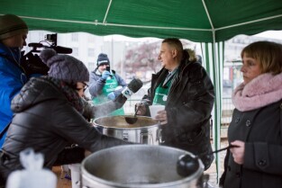 Akcja pomagamy ze smakiem zorganizowana przez Towarzystwo Pomocy im. św. Brata Alberta. Nz Wojciech Bystry - prezes fundacji.