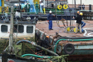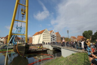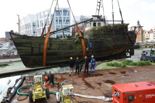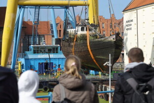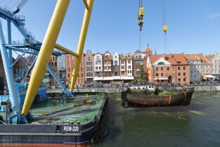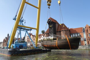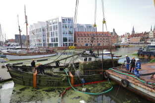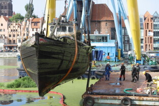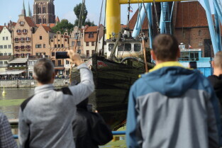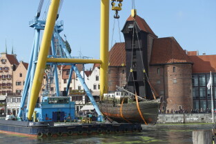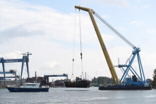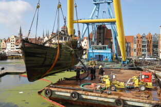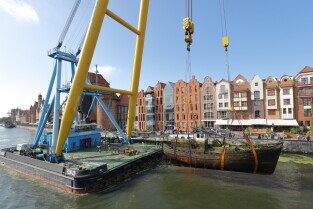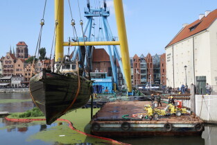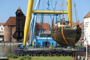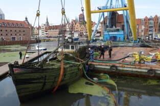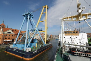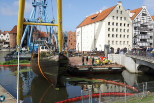 Gdańsk. Akcja wydobycia wraku Incentive z dna mariny.