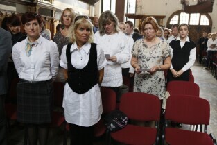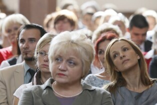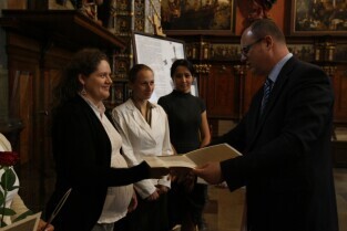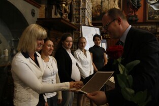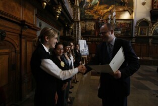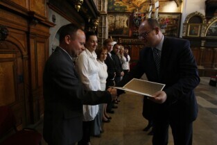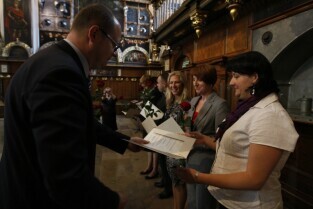 Prezydent Gdańska Paweł Adamowicz wręczył gdańskim nauczycielom akty mianowania. Gdańsk, Dwór Artusa