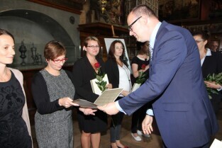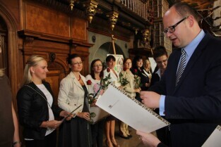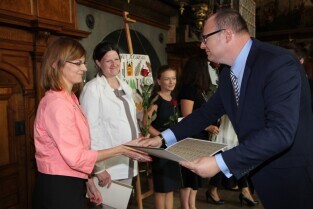 Gdańsk, Dwór Artusa. Prezydent Gdańska Paweł Adamowicz wręczył gdańskim nauczycielom akty nadania tytułu nauczyciela mianowanego.