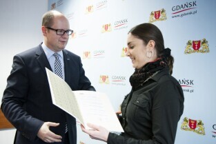 Urząd Miejski w Gdański. Prezydent Gdańska Paweł Adamowicz wręcza akty mianowania gdańskim nauczycielom