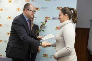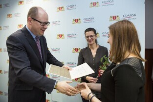 Urząd Miejski w Gdański. Prezydent Gdańska Paweł Adamowicz wręcza akty mianowania gdańskim nauczycielom