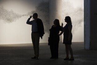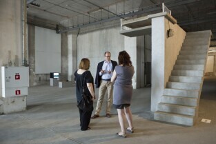 Festiwal Alternativa 2014 - wystawa w Hali 90B Stoczni Gdańskiej. Nz. od lewej: Dyrektor Biura Prezydenta Gdańska ds. Kultury Anna Czekanowicz-Drążewska, Dyrektor Artystyczny Festiwalu Aneta Szyłak i Prezydent Gdańska Paweł Adamowicz