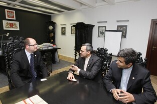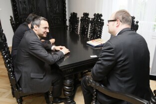Spotkanie Prezydenta Gdańska Pawła Adamowicza z Ambasadorem Islamskiej Republiki Iranu w Polsce Samadem Ali Lakizadehem. Gdańsk, Urząd Miejski