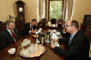 Spotkanie Prezydenta Gdańska Pawła Adamowicza z Ambasadorem Irlandii w Polsce Declanem O'Donovan. Gdańsk, Nowy Ratusz