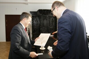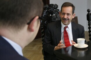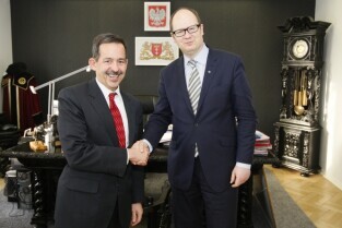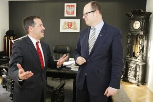 Spotkanie Prezydenta Gdańska Pawła Adamowicza z Ambasadorem USA w Polsce Stephenem D. Mullem. Gdańsk, Urząd Miejski