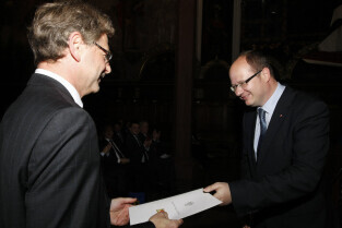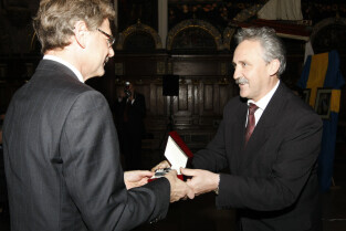 Mianowanie konsula honorowego Szwecji, którym został Tadeusz Iwanowski. Nz. gratulacje składa Prezydent Gdańska, Paweł Adamowicz