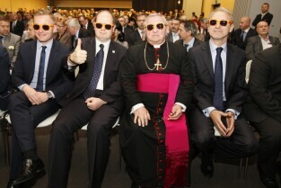 Gdańsk Letnica. Otwarcie centrum wystawienniczo-kongresowego AmberExpo, inwestycji zrealizowanej przez Międzynarodowe Targi Gdańskie SA. Nz. Metropolita Gdański Abp Sławoj Leszek Głódź