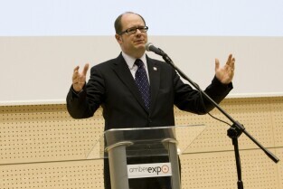 Gdańsk Letnica. Otwarcie centrum wystawienniczo-kongresowego AmberExpo, inwestycji zrealizowanej przez Międzynarodowe Targi Gdańskie SA. Nz. Członek Zarządu Woj. Pomorskiego Ryszard Świlski