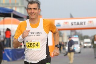 Gdańsk. Ponad 4000 biegaczek i biegaczy pobiegło w AmberExpo Półmaratonie Gdańsk 2016. Nz Krzysztof Żebrowski-zwycięzca na dystansie 5 km.