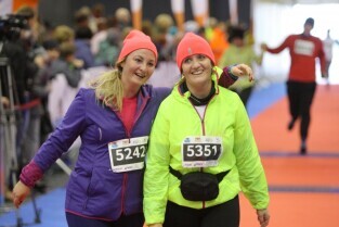 Gdańsk. Ponad 4000 biegaczek i biegaczy pobiegło w AmberExpo Półmaratonie Gdańsk 2016. Nz Aleksandra Brzezińska i Olga Ochal z Bydgoszczy -pierwsza Kobieta w Pólmaratonie.